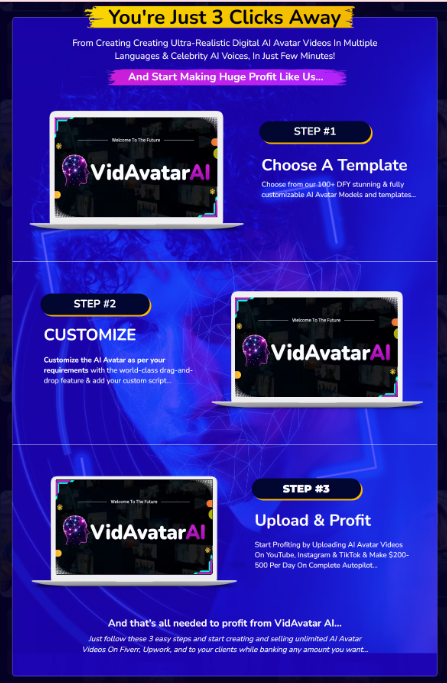 - Upsells and OTO Breakdown: VidAvatar offers optional upgrades to enhance your experience, such as additional templates, advanced customization options, and extended avatar libraries.